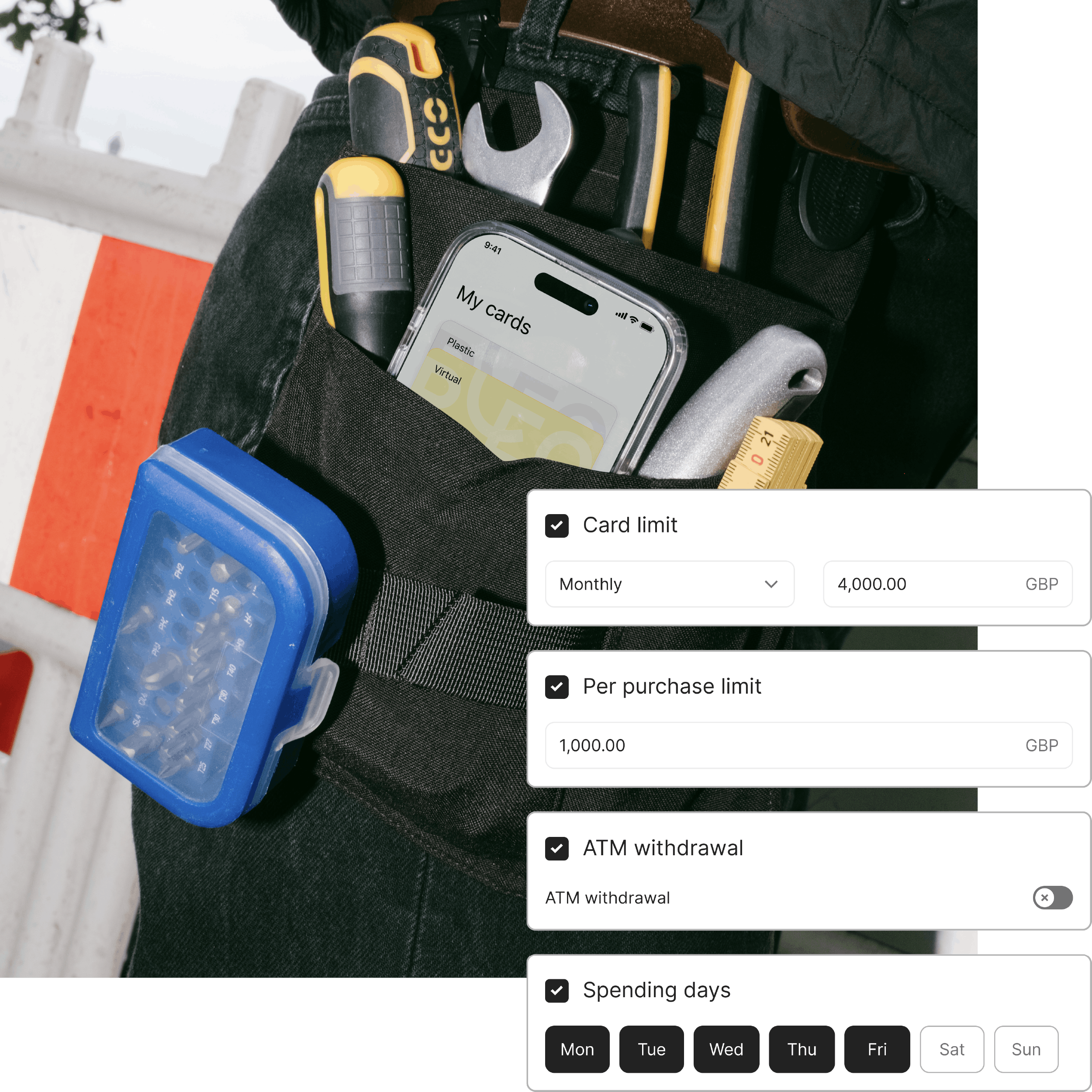 Easily issue physical, virtual or temporary cards for supply runs and on the go purchases. No personal spend involved and every transaction is tracked instantly in the app for complete visibility and control.